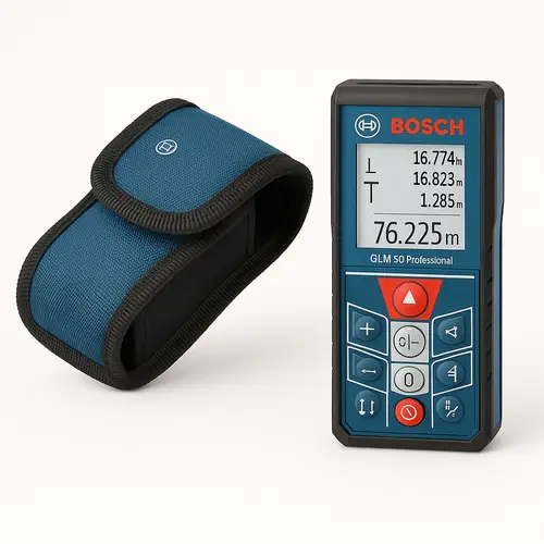 BOSCH plastic laser finder for distance measurement. Features a 0-250M range, uses AA size batteries. Ideal for precise distance calculations.