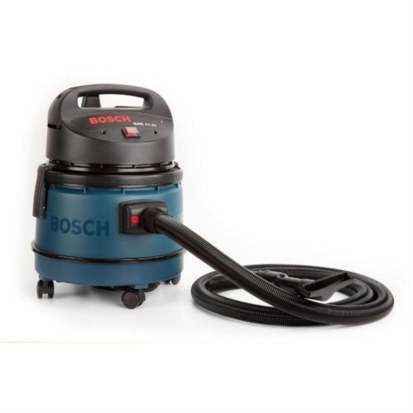 Bosch Professional 900W vacuum machine with 21L capacity. Features 50 l/sec max airflow, 150 Mbar max pressure, and electric power source. Weighs 6.3kg without cable.