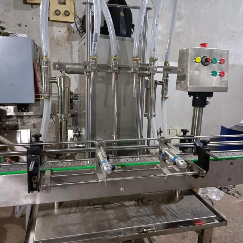 Automatic electric sanitizer bottle filling machine. Offers 40 BPM capacity with 2 HP power. Made of stainless steel, 240V, 50 Hz, single phase operation.