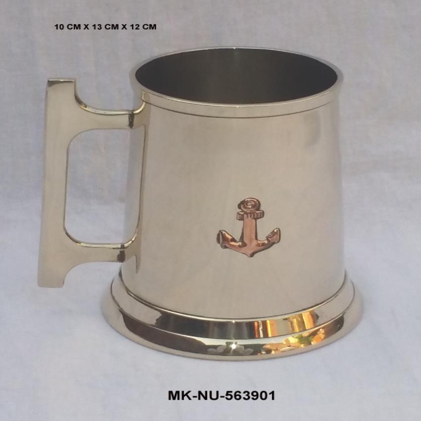 Durable brass beer mugs, 16 Oz capacity, 10x13x12cm size. Modern design in copper color. Ideal for serving beverages. Packaged securely. Minimum order 75 pieces.