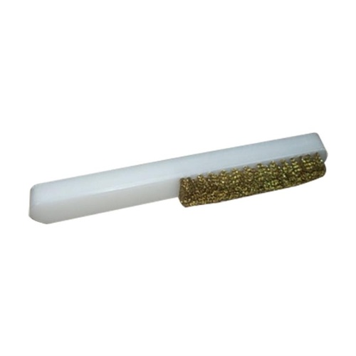 Short handle brass wire brush with nylon grip. Durable construction for various cleaning applications. Versatile and practical tool.