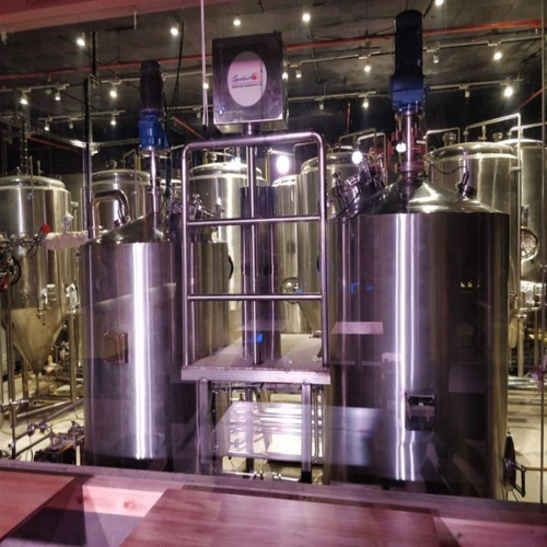Stainless steel, polished, cylindrical brewery equipment. Available in 500 L to 1 Lakh L capacity. Suitable for non-alcoholic storage. 340V, sea-packed for dispatch from Chennai or Mumbai.