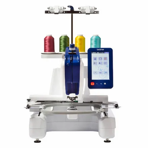 The Brother VR is a single head, single needle computer embroidery machine. It is designed for efficient and precise embroidery with various design capabilities.
