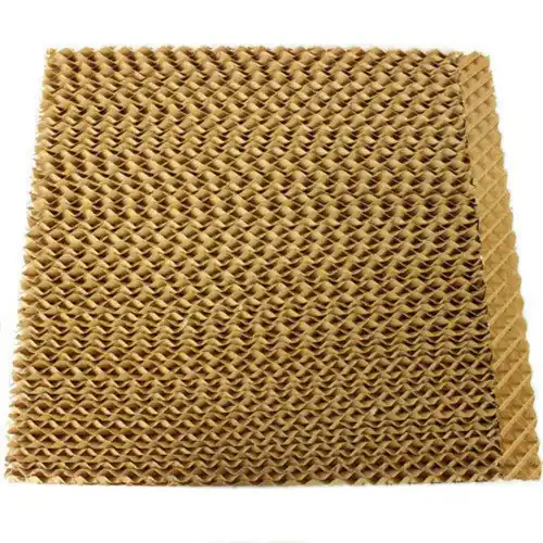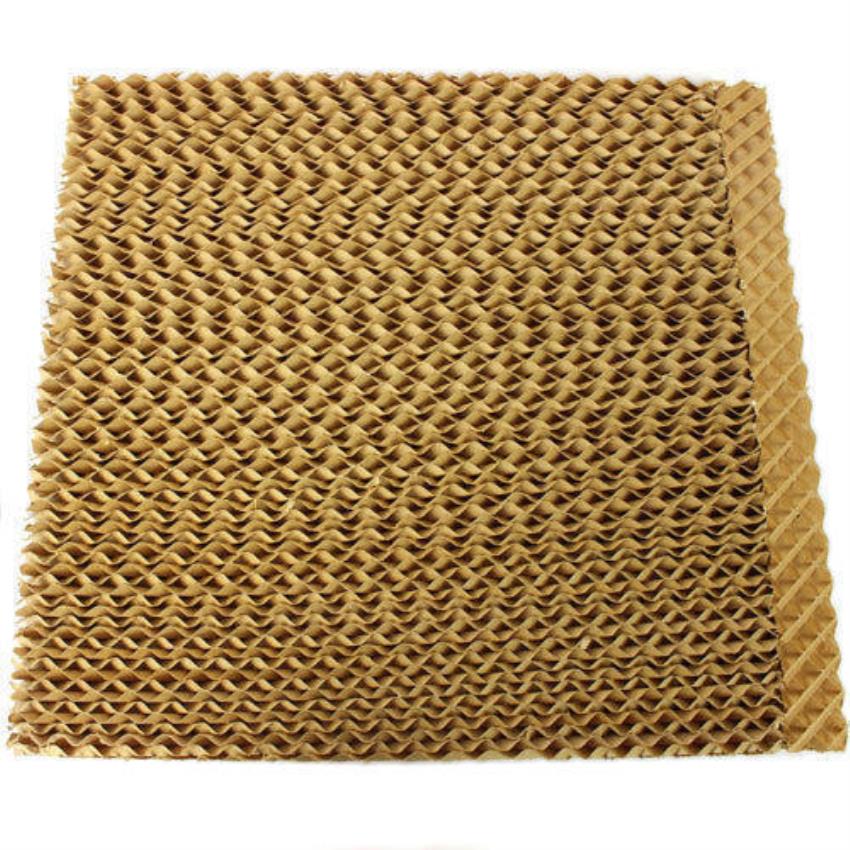 Brown cellulose cooler pad with up to 100 mm thickness. Features plastic cooler body, rectangular shape, and operates between 0-45°C with 0-90% relative humidity.