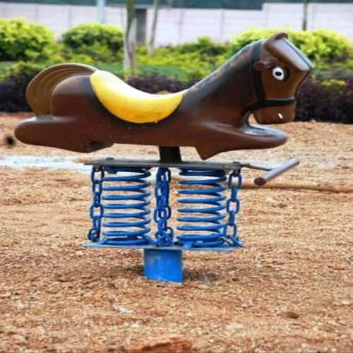 FRP horse rider, 3ft dimension, suitable for children 11-13 years. Brown color, ideal for garden or park use. Made in India.
