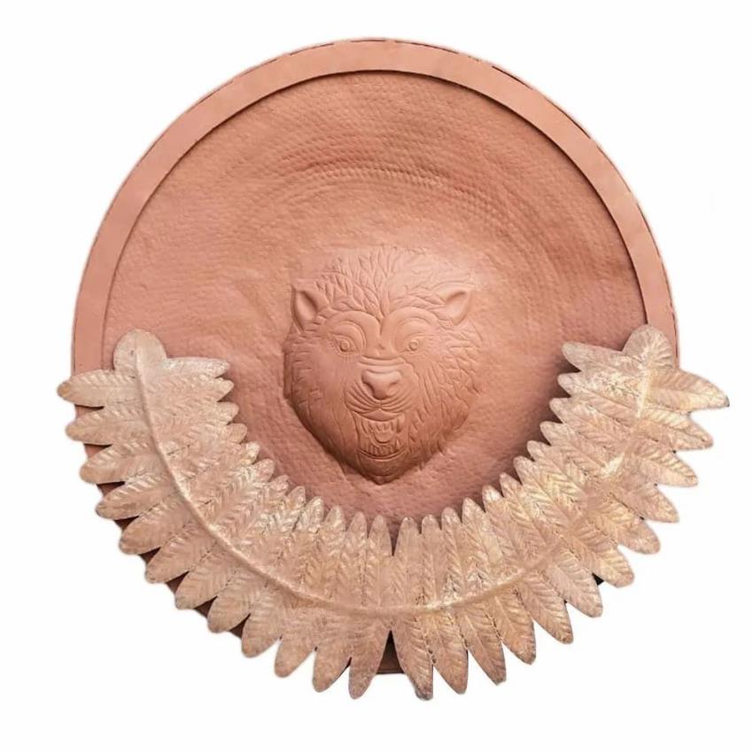 Wall-mounted terracotta artifact, 24-inch diameter, round shape. Crafted from terracotta clay in a natural brown finish. Ideal for interior decoration. Minimum order quantity of 5 pieces.