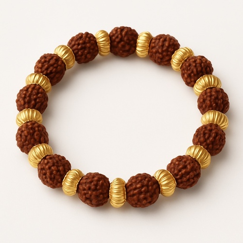 Wood bracelet with Rudraksha cap, brown color, weighing 4 grams. Packaged in a packet. Minimum order quantity of 1 piece.