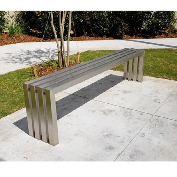 Modern, non-foldable brushed stainless steel bench with seating for 3-4 persons. Durable construction for contemporary spaces.
