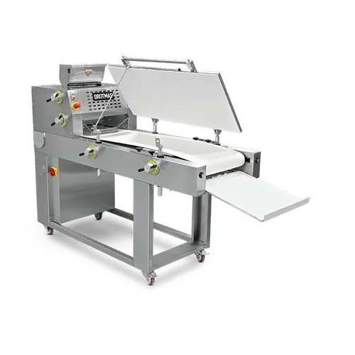 BSVC Long Moulder equipment, semi-automatic and stainless steel. Suitable for biscuits, cookies, bread, and pizza. Motor power 0-1 HP, 10 kg capacity.
