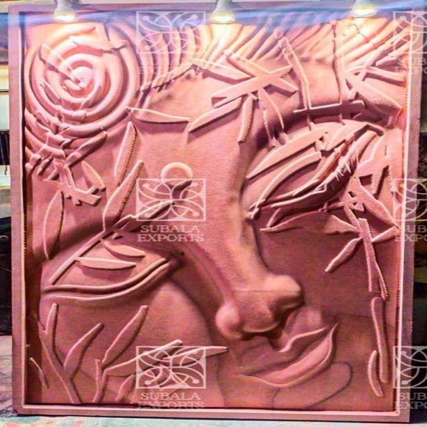 Smooth finish Buddha design MDF wall mural, customizable size, 25-50mm thick. Handmade in India for home decor with carving art form.