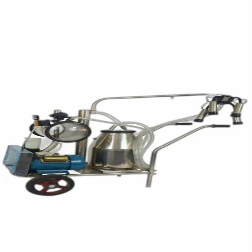 Semi-automatic trolley-design milking machine for buffalo. Features a single cluster and bucket, with a 70 L milk can capacity. Processes 1-5 cows per hour.