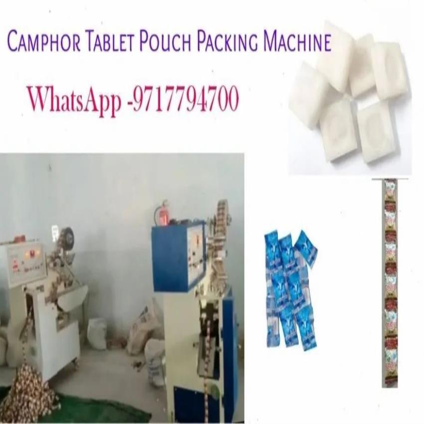 Automatic single phase candy pouch packaging machine, 220V. Features bowl feeder, 2.5 kW power, and variable speed for camphor packaging.