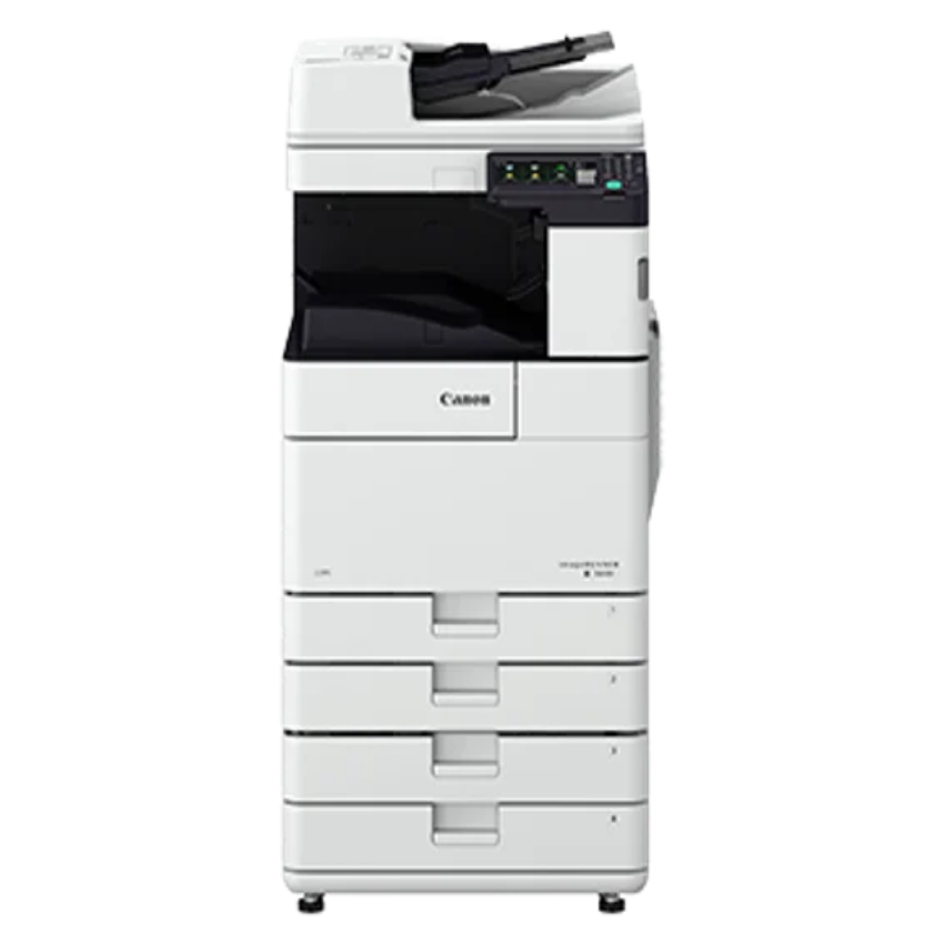 Canon Ir2725 laser printer for office use. Supports A3 paper size, offering Print, Scan, Copy, and Fax functions. Features two-sided scanning.