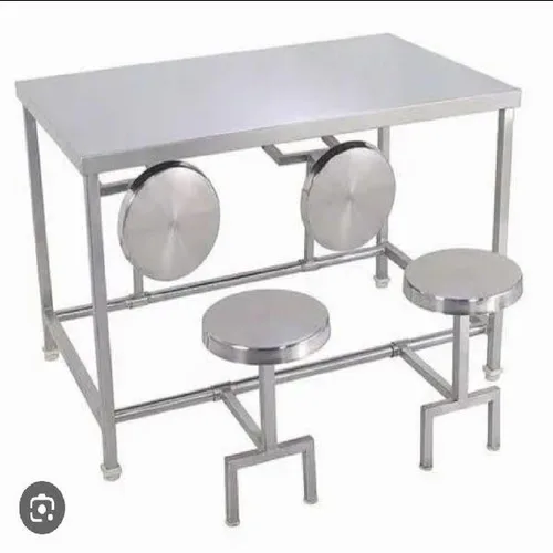 Canteen table set including foldable chairs. Designed for efficient use of space and easy mobility. Ideal for cafeterias, break rooms, and communal dining areas. Offers practical seating solutions.