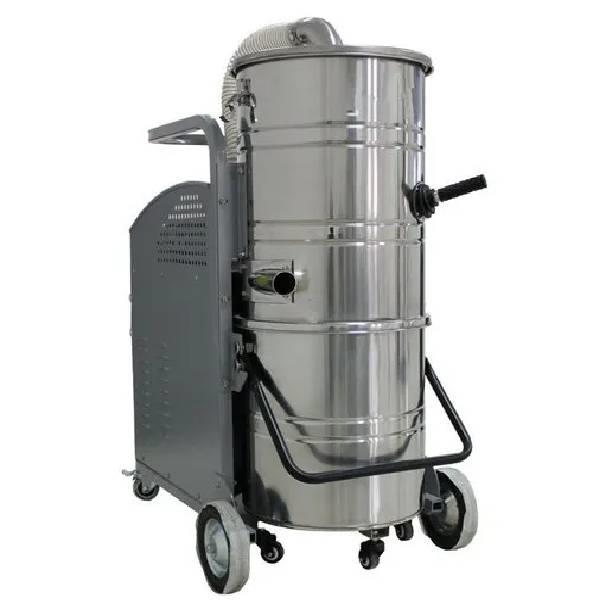 Three-phase industrial car vacuum machine with 40-60L tank capacity. Features 120 Ltrs/sec airflow and 2000 W - 3000 W power consumption. Stainless steel construction.
