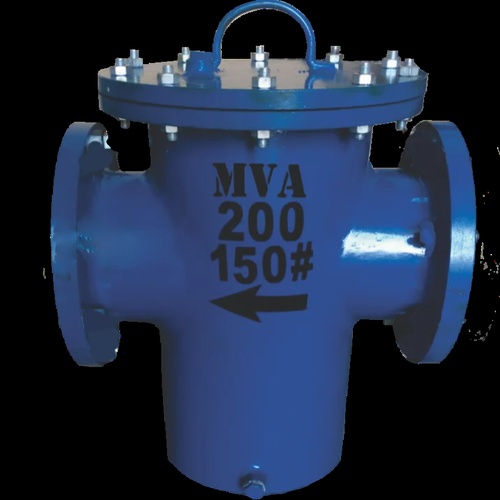 Carbon steel water basket strainer, 100-200m3/hr capacity. Round shape, color coated finish. Operates up to 120°C. Minimum order quantity of 100 units.