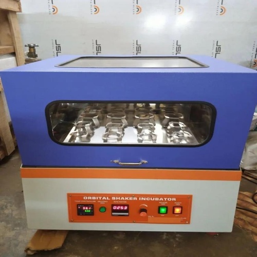 Lab shaking incubator, model CLT/OSI-24. Mild steel inner with S.S-304. 220v operation. Digital display, air circulation, and temperature range from +5 to 60°C. Size 18x18.