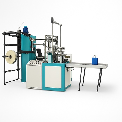 Fully automatic, three-phase carry bag making machine constructed from mild steel. Features color-coated surface finishing and operates at 50 Hz with a max output of 40 Kg/Hour.