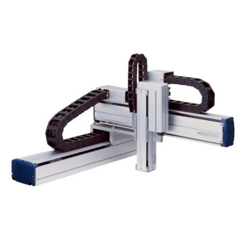 Mild steel Cartesian robot for pick and place applications. Features traverse stroke of 2400mm, vertical stroke of 1800mm, and operates on 220-240V.
