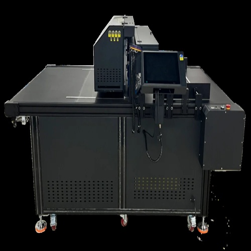 Industrial printing machine for paper cartons, boxes, and bags. Uses water-based pigment or dye ink. Features adjustable printheads and high-speed printing up to 27m/min.