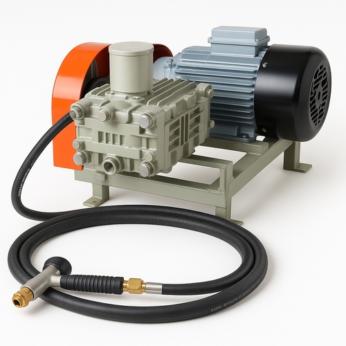 1.5 HP cast iron electric car washer pump. Features 3 plungers, 30mm piston diameter, and 1440 pump RPM. Delivers 30 bar discharge pressure.