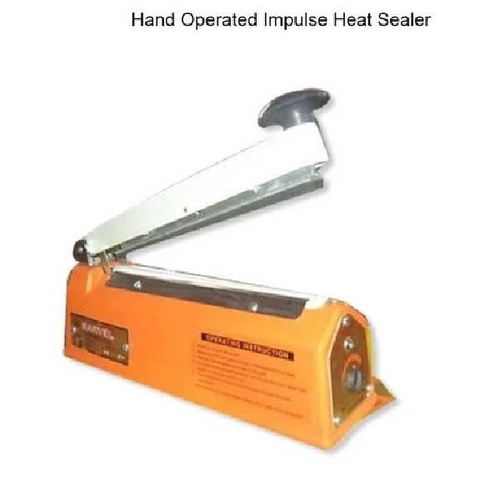 Hand operated impulse heat sealer made of cast steel. Semi-automatic with a 2mm seal width, ideal for various packaging needs.
