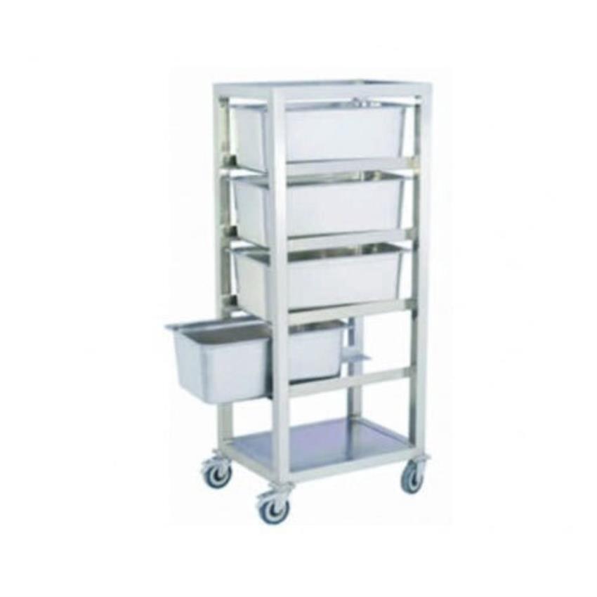 This food trolley offers convenient mobile storage and transport for catering events and kitchens. Its robust design supports efficient serving and organization of food items.