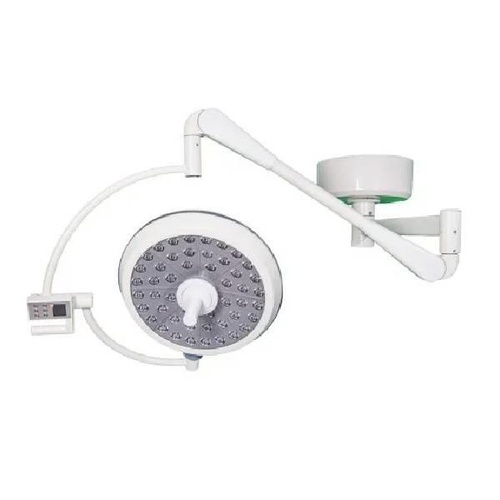 Ceiling mounted LED operation theater light, single dome, axial movement. Features 10W power consumption, ideal for surgical environments. Provides efficient illumination for procedures.