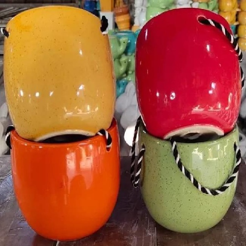 Ceramic round flower pot with a plain pattern. Designed for balcony mounting, suitable for garden use. Elegant and functional.