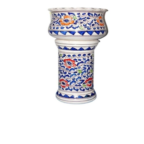 Ceramic round planter pot stand set in multi-color painted finish. Made in India, packaged in a box. Minimum order quantity of 50 units.