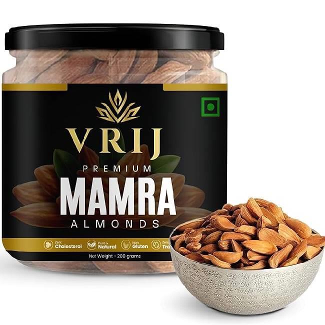 Premium mamra almonds, chemical-free and naturally flavored. Dried item form, ideal for healthy snacking and culinary uses. High-quality, wholesome almonds.