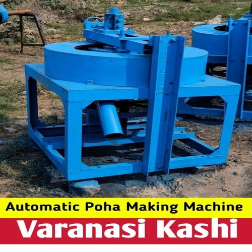 Semi-automatic chiura poha making equipment for business. Features 5 hp power, 100 kg/hr production capacity, and a 36" roll size. Made in India.