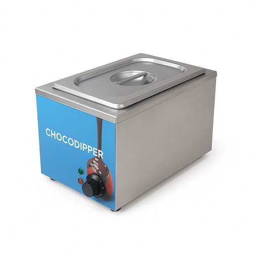 This 3-liter stainless steel chocolate melting machine maintains temperatures up to +50'C. Designed for standard use, it operates on a single phase and is manufactured in India.
