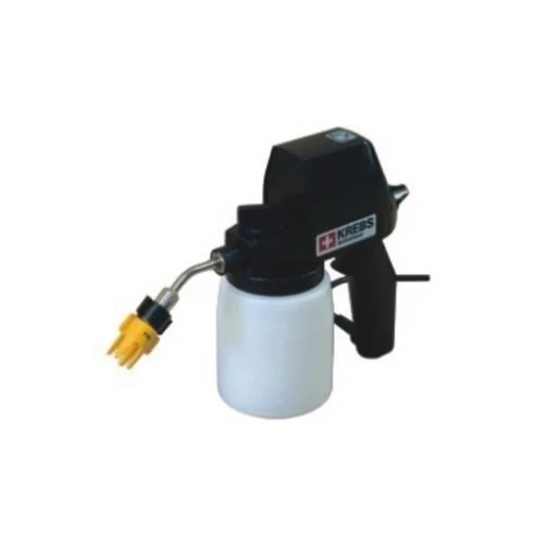 This chocolate spray machine features a 200 ml capacity and a 2 mm nozzle. Designed for efficient chocolate coating, it operates effectively in a black and white finish.