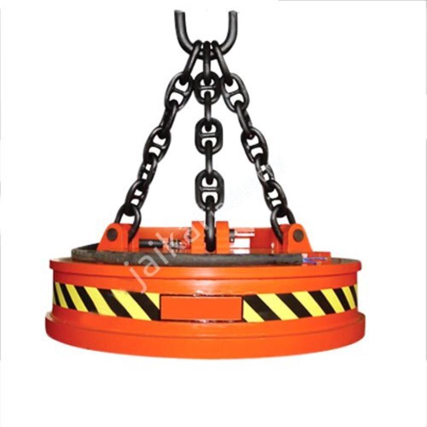 Circular electro lifting magnet with a 2000 kg capacity. Suitable for heavy industrial lifting tasks. High-performance lifting device.