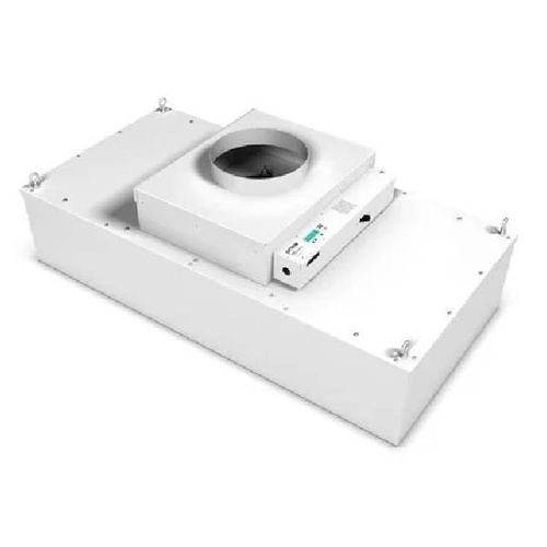 SS-304/MS powder-coated Fan Filter Unit. Sizes 2x2, 3x2, 4x2 ft. 90 FPM velocity, 99.97% efficiency against 0.3 micron. Noise level 55 db.