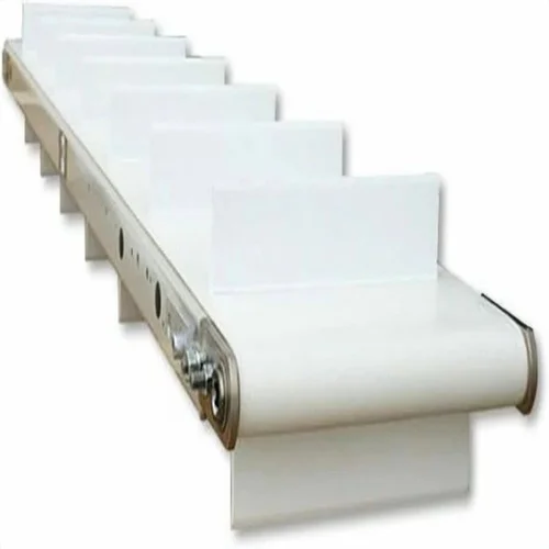 Durable cleated conveyor machine designed for various industrial applications. Provides reliable material handling and transport solutions. Robust construction for long-term operation.