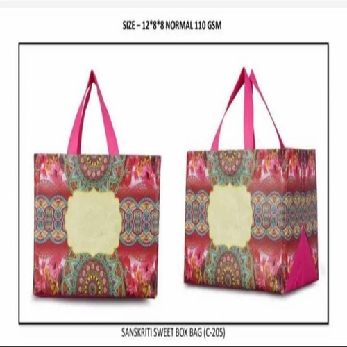 This printed cloth bag offers 5 Kg capacity for sweet packaging. Customized size available. Made in India. Ideal for retail and gifting.