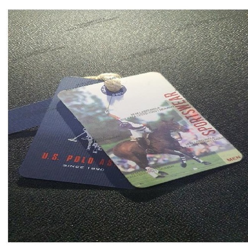 Standard paper tag for garments. Provides essential product information and branding in a cost-effective format.