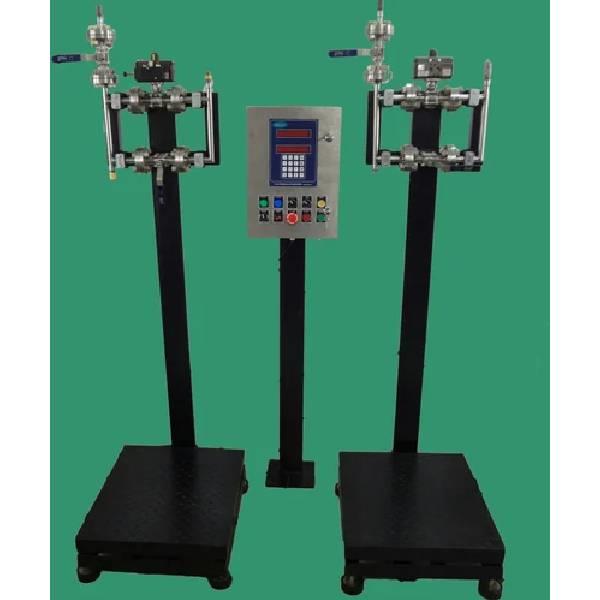 Industrial CO2 gas filling machine made of mild steel. Designed for cylinder containers with a capacity of 300 Kg, utilizing CO2 gas.