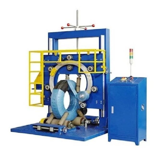 Industrial mild steel coil stretch wrapping machine. Operates on 220V, three-phase, 50 Hz. Offers 120 coils/hr capacity with a 400mm head size.