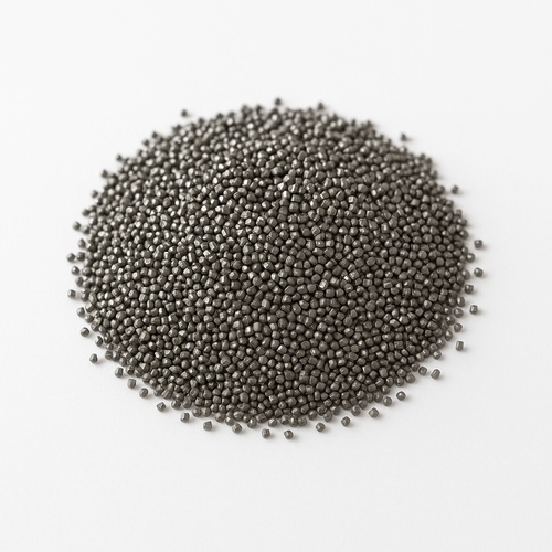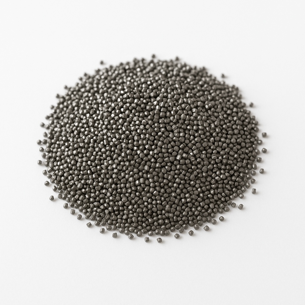 Cold rolled, round steel shot. Black color with a size range of 1.40-0.30 mm. Material is steel, processed using a cold rolling technique.