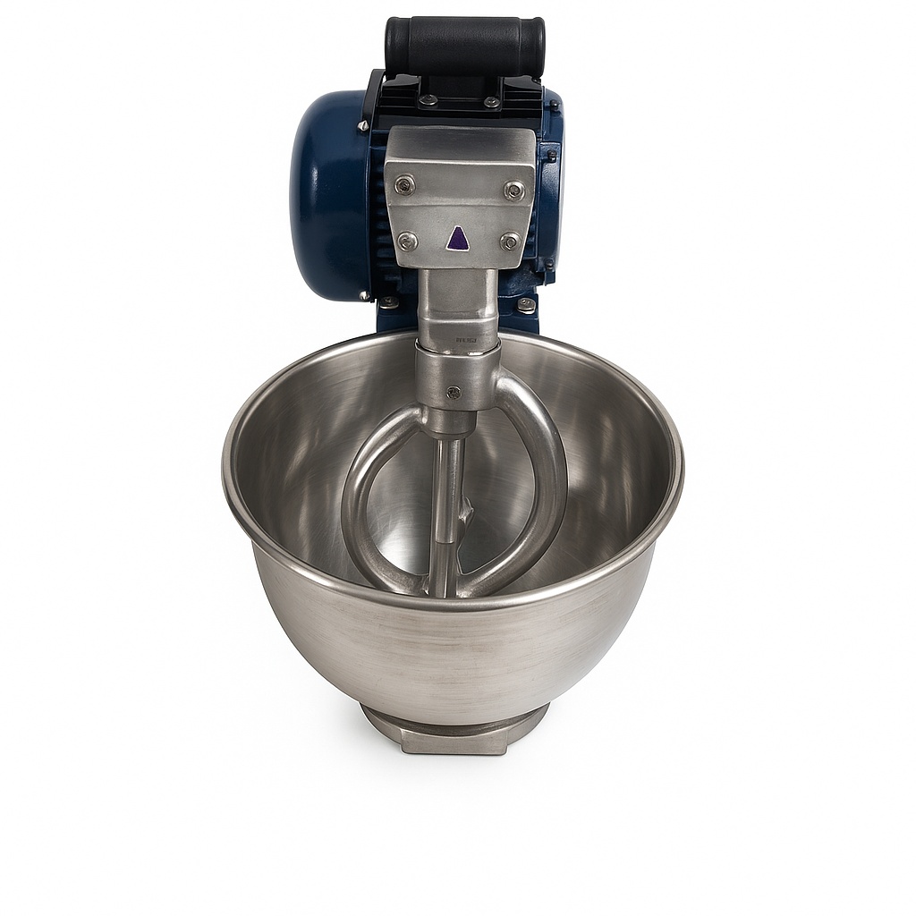 Automatic commercial atta dough kneading machine. Stainless steel construction with 10-15 kg and 5 kg to 10 kg capacity options. Single phase, 220V, 50Hz.