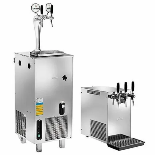 SS, Brass, Copper beer dispensing system with capacity for 1-12 taps, maintaining 4°C. Available in T-shape, Breech, L-shape with 304/316 grade and polished/painted finishes.