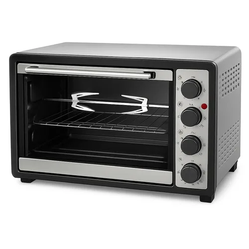Stainless steel commercial rotisserie oven for chicken. Operates on 23 kW power, 220 V, and 50 Hz frequency. Robust build for high-volume roasting.