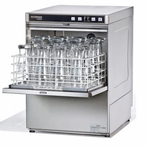 A commercial glass washer designed for efficient cleaning in high-volume environments. Offers reliable performance for professional kitchen and bar use.