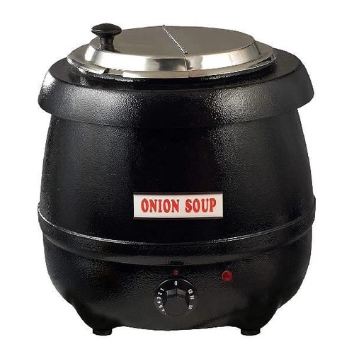 Commercial electric soup kettle warmer with robust heating element for maintaining optimal soup temperature. Designed for consistent performance in high-volume food service environments. Durable and reliable operation.