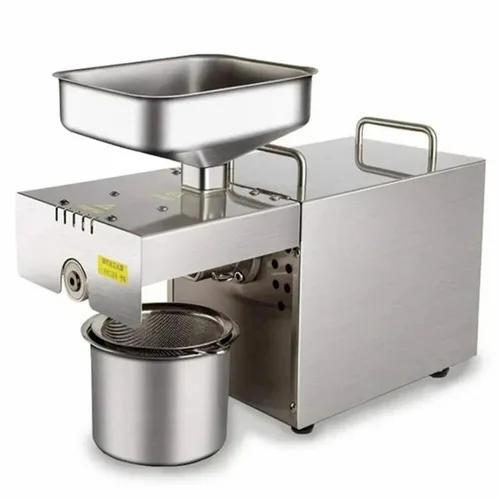 SS Commercial Expeller Mini Oil Mill Machine for mustard oil extraction. 6 bolt design, 1 ton/day capacity, automatic operation.