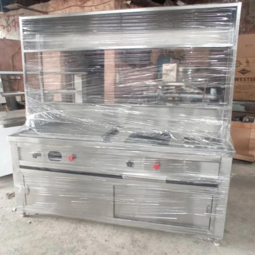 Durable fast food stall designed for commercial use. Specifications include model designation 'Fast Food Stall'. Offers ample space for food preparation and serving.