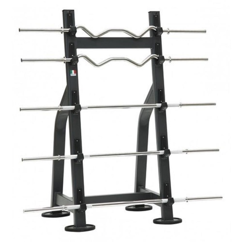 Durable iron rod stand for commercial gym use. Features a polished black finish. Designed for professional fitness applications. Made in India.